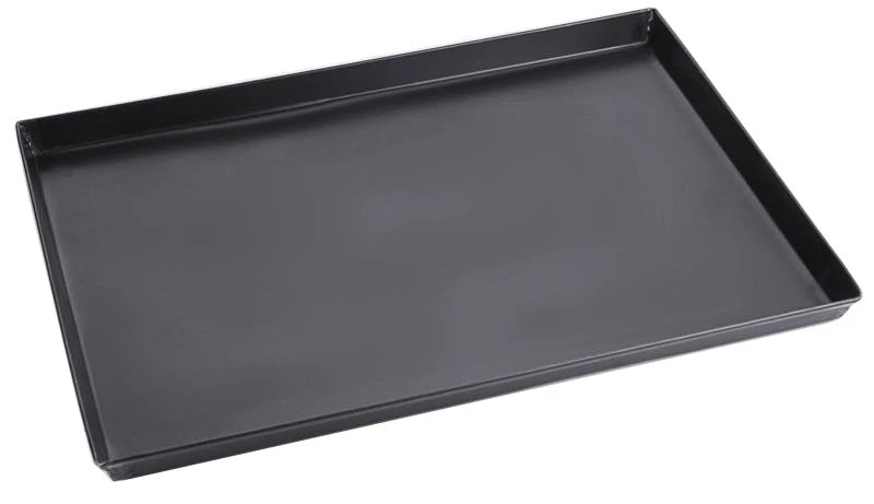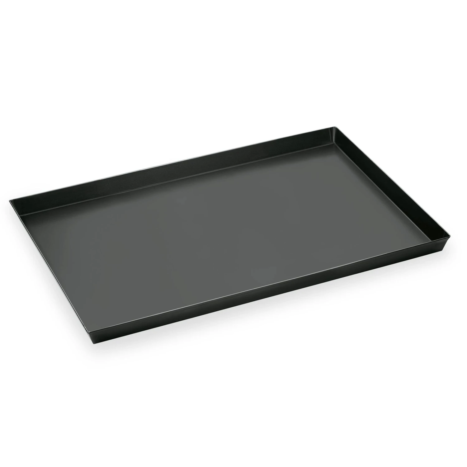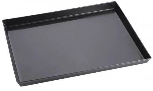 2x Rechteckiges Pizzablech aus 0,7 mm starkem Blaublech, mit umgelegtem, verstärktem Rand, nicht spülmaschinengeeignet. Pizzableche müssen trocken und eingefettet gelagert werden ! Länge außen: 40 cm, Breite außen: 30 cm, Höhe: 3 cm