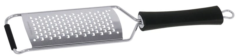 2x Reiben, schmal aus gehärtetem Edelstahl 18/10, 22 x 3,5 cm feilenförmige Reibfläche, 18 cm, langer schwarzer Polyamid-Griff, mit Aufhängeöse, mit Stützbügel, hochwertige Verarbeitung, spülmaschinengeeignet Klingenbreite: 6 mm, grob