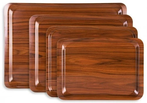 2x Serviertablett aus melaminbeschichtetem 3 mm-Pressholz mit Nussbaum-Dekor. schlagfest und bruchstabil. temperaturresistent von -10C bis +100C. säure-. laugen-. UV-beständig Länge: 46 cm. Breite: 36 cm. Höhe: 1.5 cm