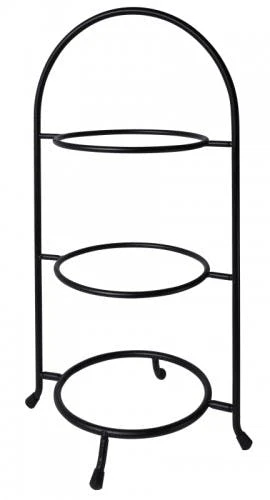aus schwarz lackiertem 6 und 8 mm starkem Stahldraht, auf Gummifüßen, schwere Ausführung Höhe: 47 cm, Durchmesser: 25 cm, Tellerdurchmesser: 21 cm [Lieferung ohne Teller.]