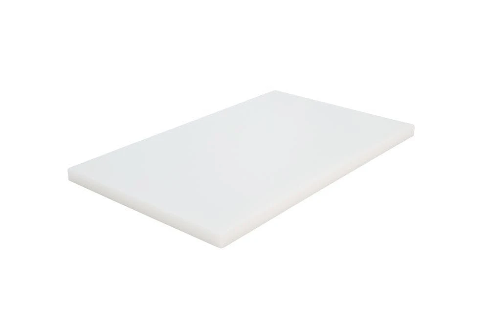 aus weißem niederdichten Polyethylen, nicht toxisch, hitzebeständig bis +90C, messerschonend, hygienisch, spülmaschinengeeignet, schwere Qualität GN: 1/2, Länge: 32,5 cm, Breite: 26,5 cm, Dicke: 2 cm