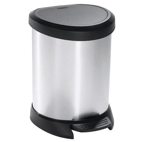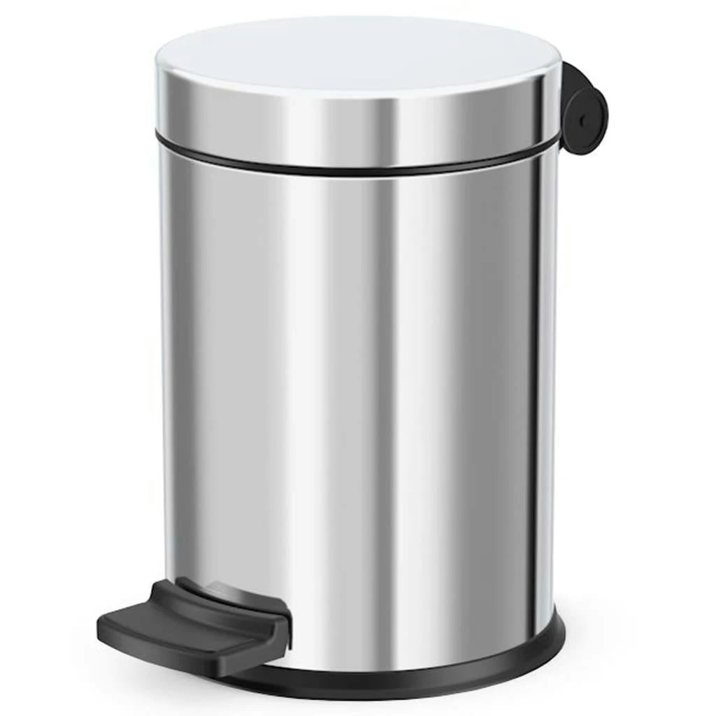 Tretabfalleimer Edelstahl 18/0, hochglänzend, mit schwarzem Kunststoffeinsatz, Deckel fällt eigenständig zu
