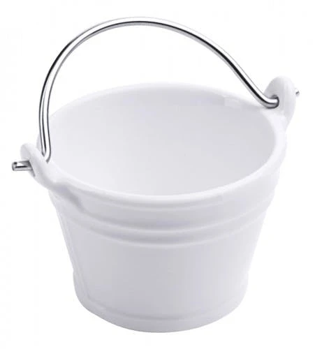 Mini-Eimer aus Porzellan aus weißem Porzellan, mit Bügel aus Edelstahldraht, lebensmittelgeeignet, spülmaschinengeeignet