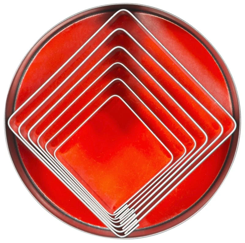 Ausstecher, quadratisch, glatte Form, aus Weißblech, sechs Stück komplett in einer Dose (Ø 10,5 cm)