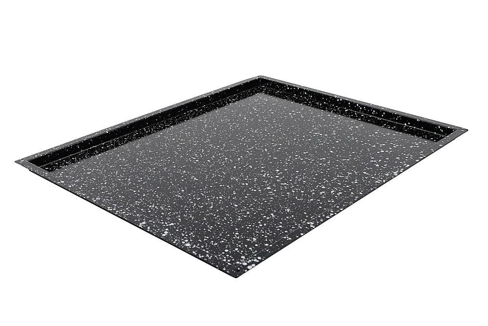 Backblech, aus 1,5 mm starkem Aluminiumblech, ungebeizt, aus einem Stück gezogen, Ränder 90° mit geschlossenen Ecken, nicht spülmaschinengeeignet