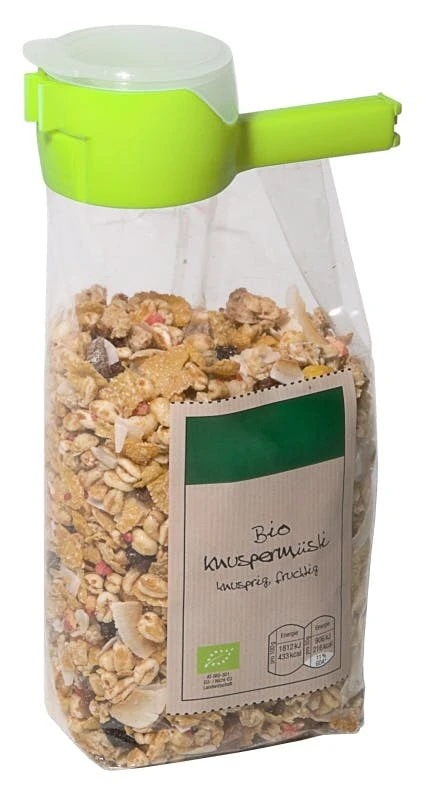 Beutelklammer mit Schütte, aus Polypropylen, original patentiertes twixit!® Seal & Pour, spülmaschinenfest, verschließt zuverlässig Beutel; der Inhalt (Zucker, Mehl, Kaffee, Müsli etc.) kann dosiert und wieder verschlossen werden