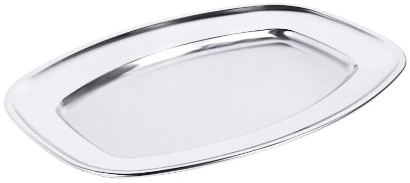 Bratenplatte, rund, aus Edelstahl, mit gebördeltem Rand, seidenmatt poliert, schwere Qualität