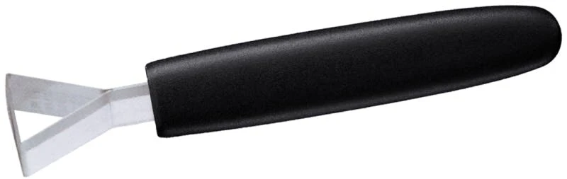 Dreieck-Garnierschneider, aus extra geschärftem Edelstahl 18/0, mit schwarzem glasfaserverstärkten Polyamid-Griff, zur Herstellung von Radieschen-Kronen, bzw. Verzierung hartschaliger Gemüsearten