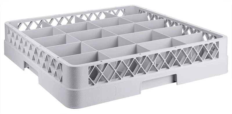 Erweiterungselement passend auf Geschirrspülkorb GLAS/TASSE 2518/009, mit Facheinteilung aus hellgrauem Polypropylen, DIN 66075-F (50 x 50 cm), stapelbar, hitzeresistent bis +120°C, durch blaue Aufsätze lässt sich die Nutzhöhe um jeweils 4 cm erweitern