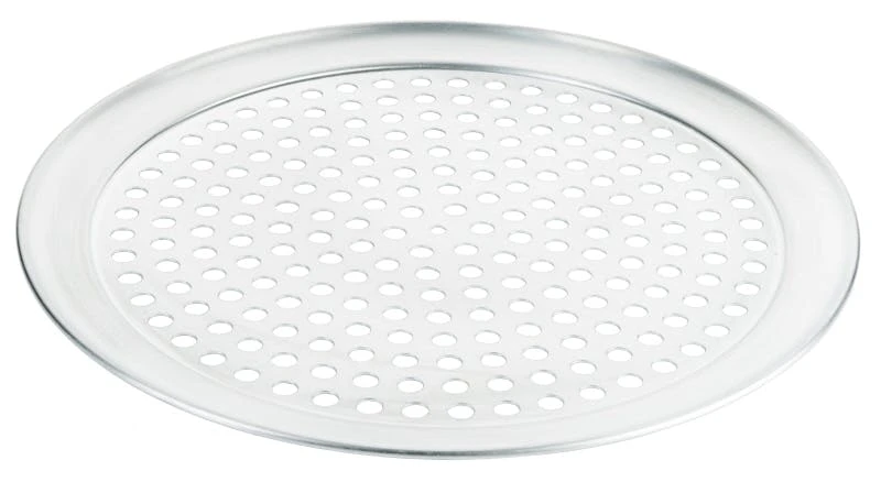 Gelochtes Pizzablech, aus Aluminium, 10 mm Lochdurchmesser, nicht spülmaschinengeeignet, für extra knusprige Pizzaböden, ideal auch für tiefgekühlte Pizza