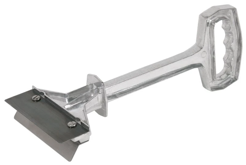 Hackblockbürste, mit flachen gehärteten Stahldrahtborsten, nicht rostfrei, Halteschlaufe und Griffplatte aus Polypropylen