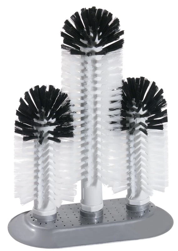 Karaffenbürste, biegsamer weißer plastikummantelter Stahldraht mit Holzgriff, Besatz aus gebleichten Naturborsten, mit Wollkopf, speziell geeignet zur Reinigung von schwer zugänglichen Dekantierkaraffen
