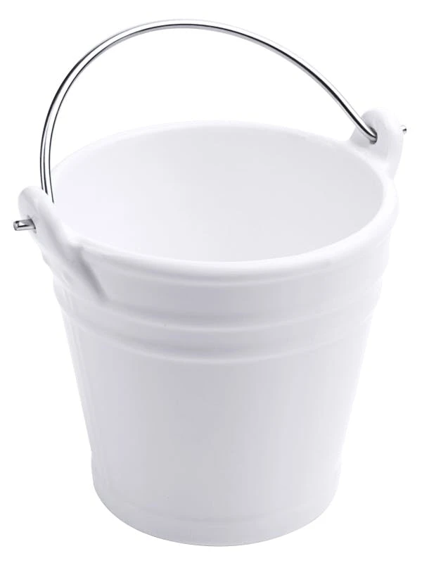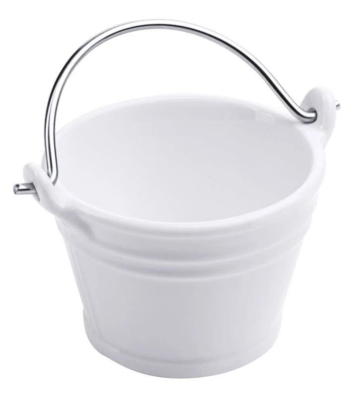 Mini-Eimer aus Porzellan, aus weißem Porzellan, mit Bügel aus Edelstahldraht, lebensmittelgeeignet, spülmaschinengeeignet