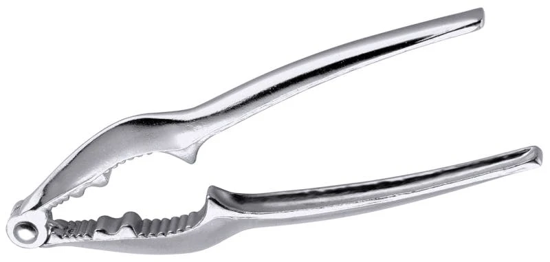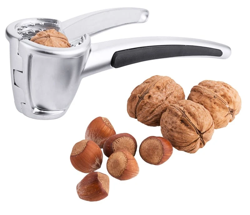 Nussknacker, aus Aluminiumguss, Gummieinlage an der Grifffläche, mit Federmechanismus, nicht spülmaschinengeeignet, zum Knacken von Walnüssen, Haselnüssen als auch Paranüssen