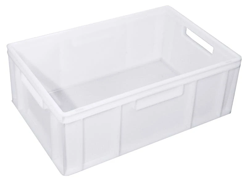 Stapelkasten, weiß, aus weißem Polyethylen, mit Griffmulde, lebensmittelecht