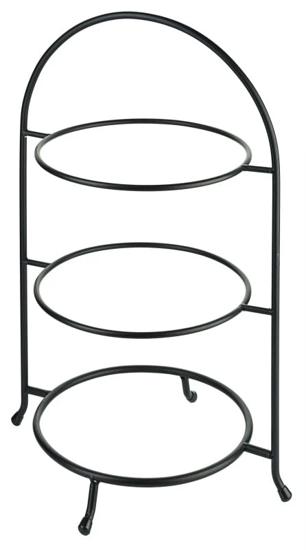 Telleretagere, dreistufig, dreistufig, aus schwarz lackiertem 6 und 8 mm starkem Stahldraht, auf Gummifüßen, schwere Ausführung