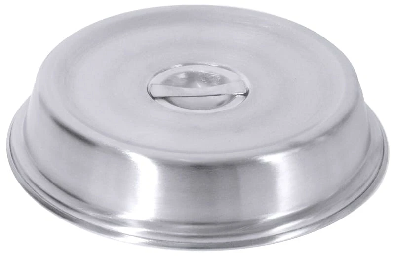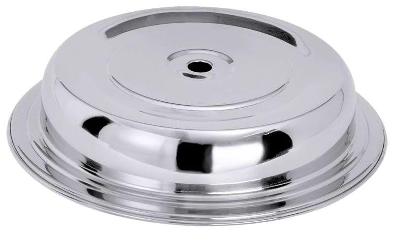 Tellerglocke, rund, aus Edelstahl 18/10, matt geschliffen, konische Form, stapelbar (auch mit Teller), mit Steggriff und Rand