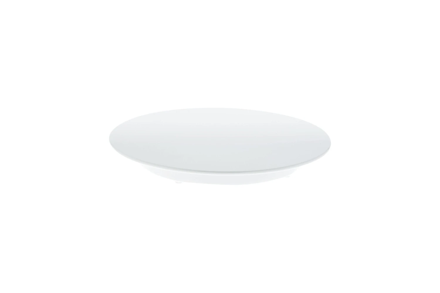Tortenplatte, aus Edelstahl 18/10, seidenmatt poliert, der geschlossene Fuß ist vollständig mit dem Rand der Auflageplatte verkapselt, schwere Qualität
