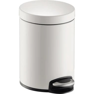 Tretabfalleimer, Edelstahl 18/0, hochglänzend, mit schwarzem Kunststoffeinsatz, Deckel fällt eigenständig zu