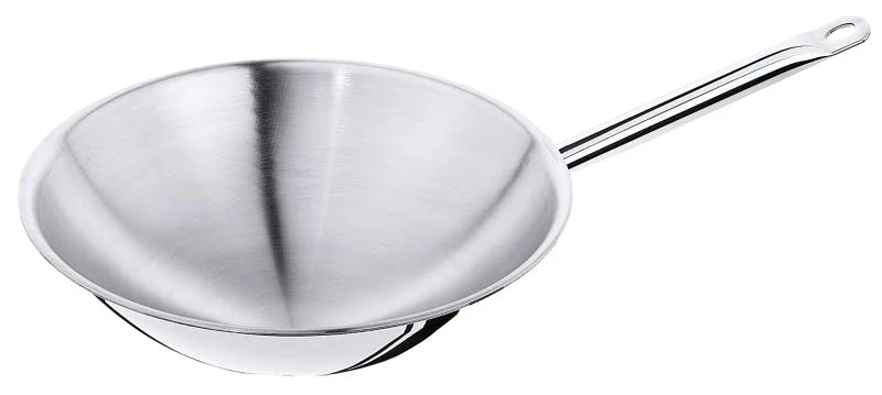 Wok aus Kupfer, aus 1,5 mm starkem Kupfer, innen aus 0,7 mm Edelstahl 18/10, nicht induktionsgeeignet, mit genietetem Stielgriff aus Messing, Rand gebördelt, schwere Qualität, originell zum Servieren von asiatischen Speisen